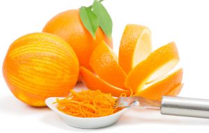 Cascas de 2 laranjas; 2 colheres (sopa) de açúcar; 2 colheres (sopa) de farelo de trigo torrado.