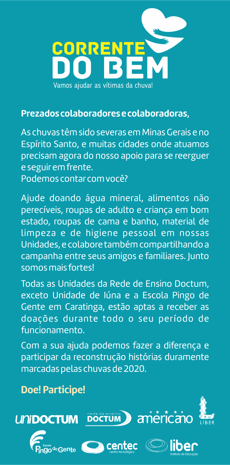 Rede Doctum promove campanha de arrecadação para auxiliar vítimas das chuvas – Intranet